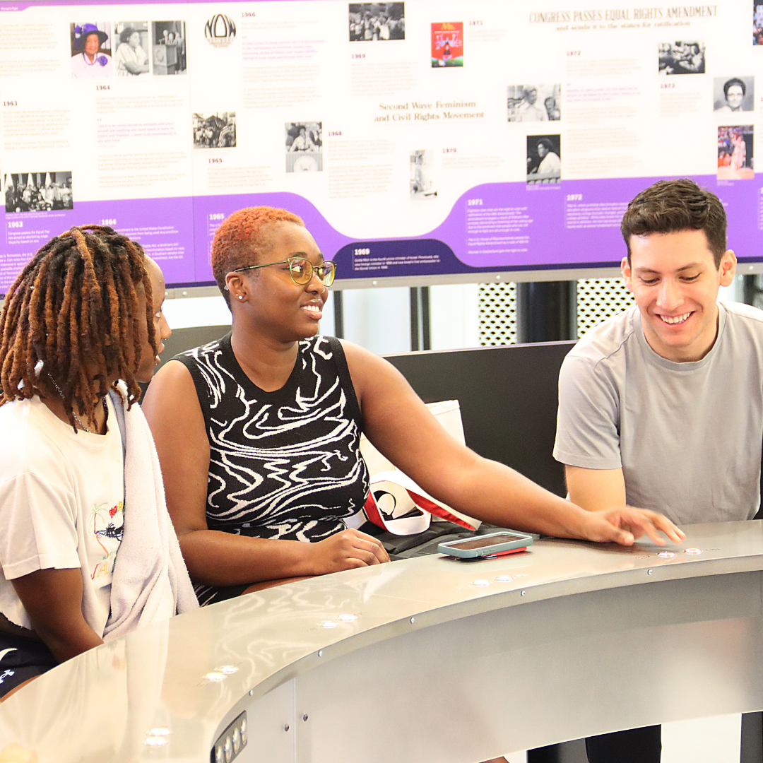 The Votes for Women Room was created to mark the 100th anniversary of the ratification of the 19th Amendment to the constitution. This permanent exhibit explores a wide range of topics surrounding democracy, political movements, and women’s role in society through videos, interactive exhibits, a timeline, and interpretative panels. Located on the second floor of the downtown Main Library, the room features an impressive Centerpiece Timeline that allows you to track women’s history and accomplishments through the years. There is also a deep dive into Tennessee’s pivotal role as the deciding vote, and the “Anatomy of a Movement” section that allows visitors to explore the main elements of activism necessary to create social change, then and today. In addition to the physical space, the Votes for Women room routinely hosts groups of all ages for engaging programs centered on learning more about the movement. Since its creation, over 42,575 people have visited the exhibit and library staff have conducted over 100 programs for groups.